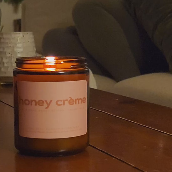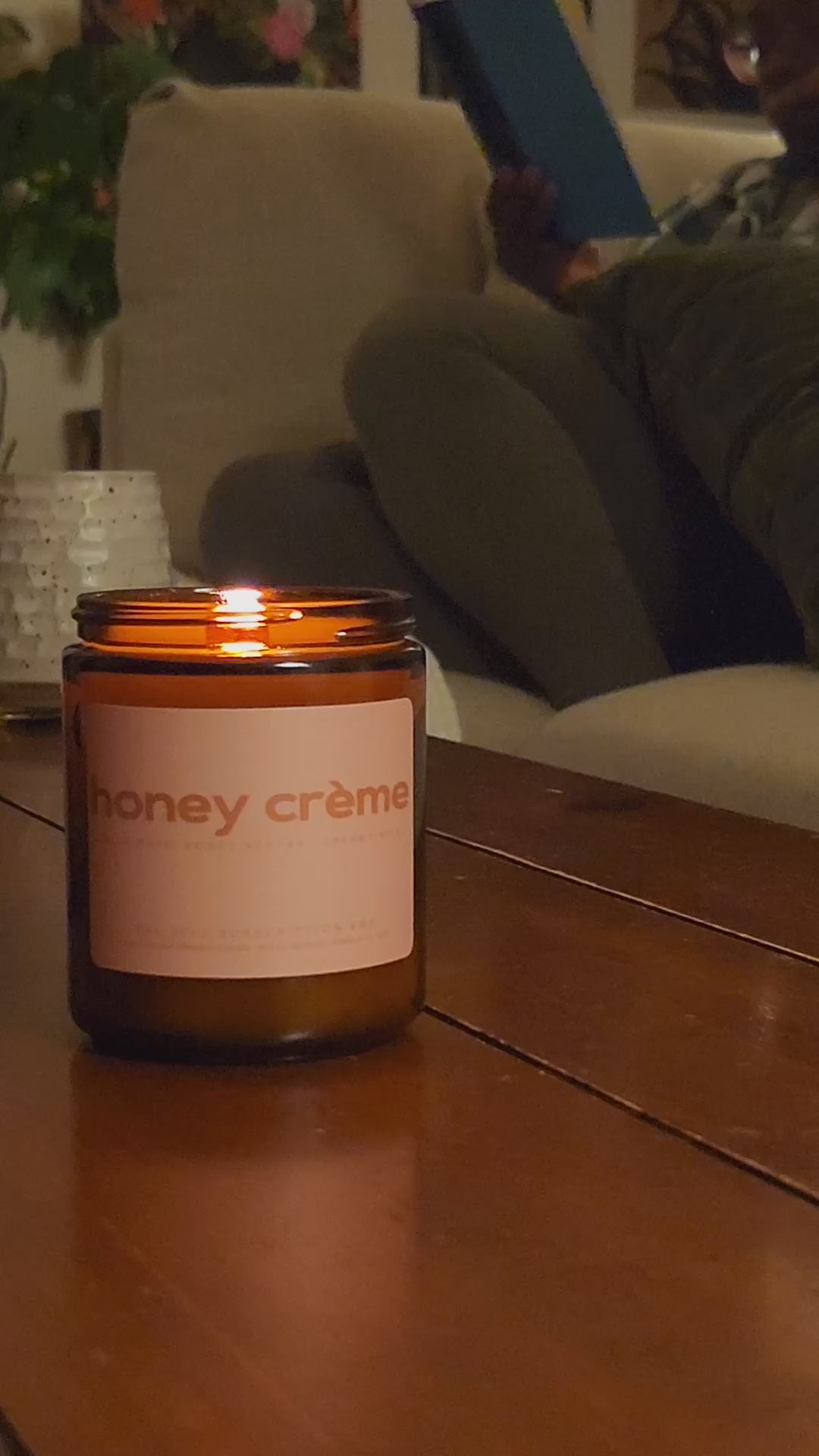 ✨ Honey Crème Candle — experience the gentle crackle of a wooden wick, wrapped in the soothing aroma of wild oats, honey nectar, and creamy milk.
